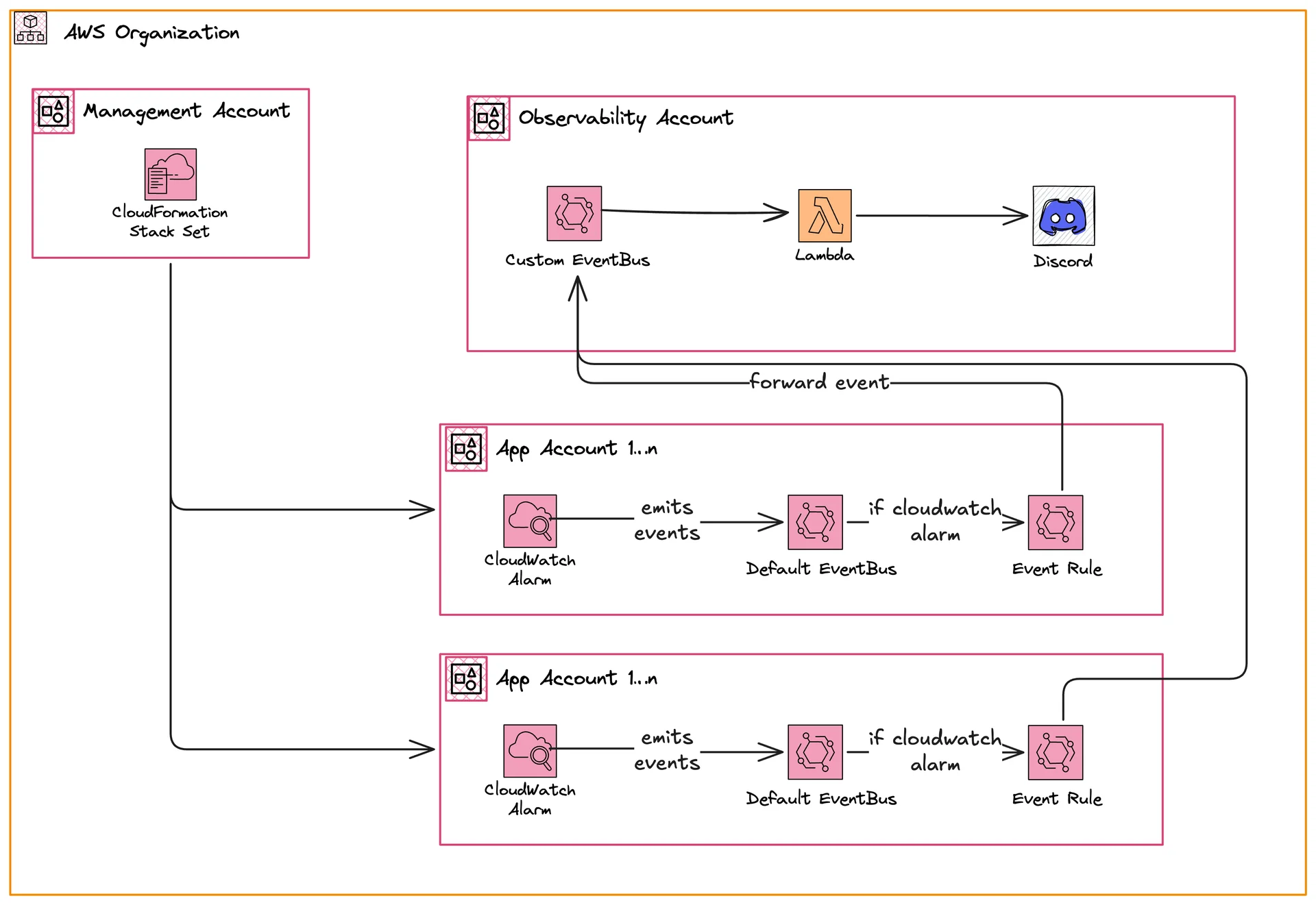 Main Learning: Build a central alerting approach with CloudWatch, Lambda, EventBridge, and CDK across your AWS Organization.
