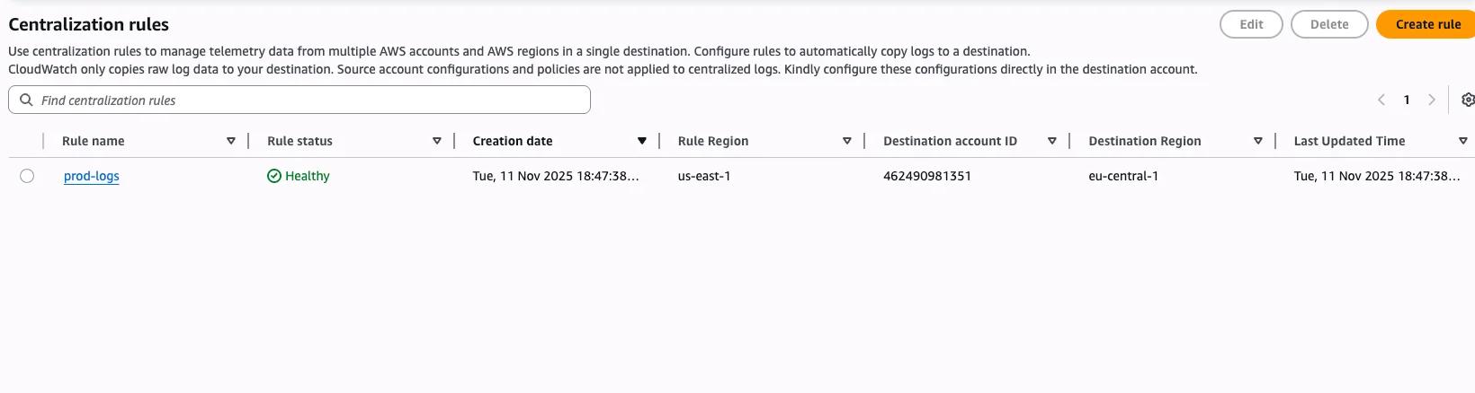 Until now! AWS just launched in 2025 the ability to centralize logs in an organization. You can create rules, based on Account IDs, Organizational Units, or your whole organization. These rules copy your logs cross-account and cross-region into your dedicated logging account.